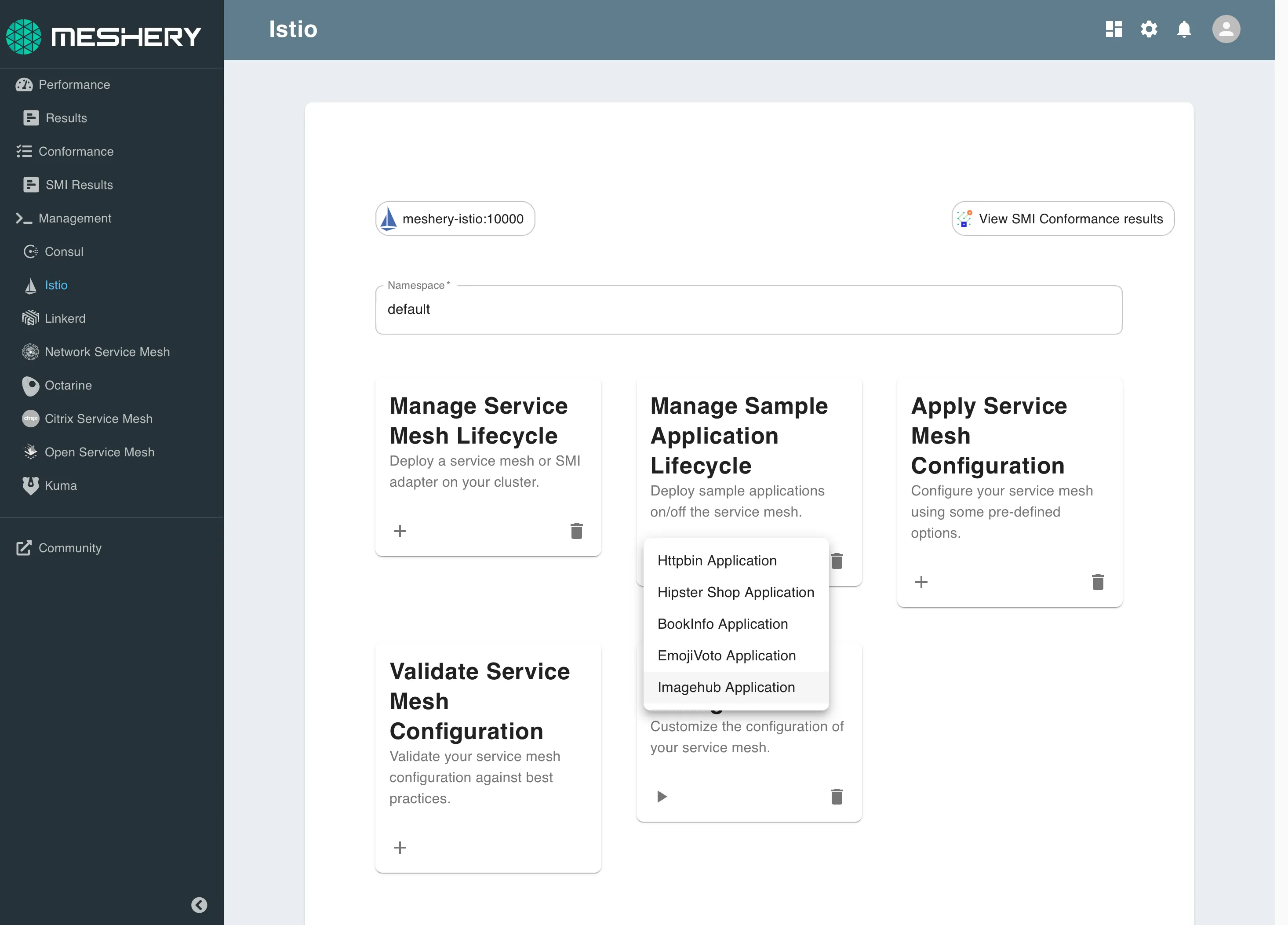 2. Click the (+) icon on the Manage Sample Application Lifecycle card and select Image Hub Application to install the latest version of Image Hub